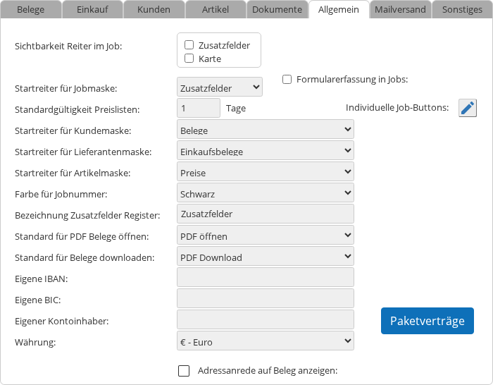 • Paketverträge – verwaltet Einstellungen zu Versand- bzw. Paketverträgen.