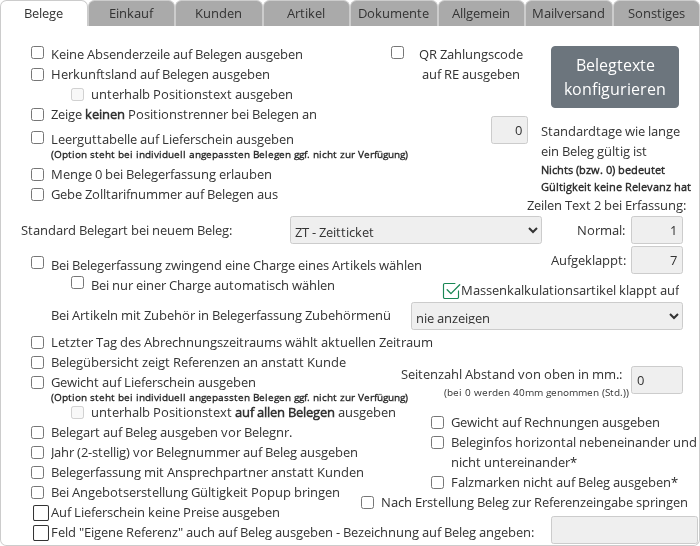 • Menge 0 bei Belegerfassung erlauben – Checkbox zur Zulassung von Mengenangabe 0 in der Belegerfassung.