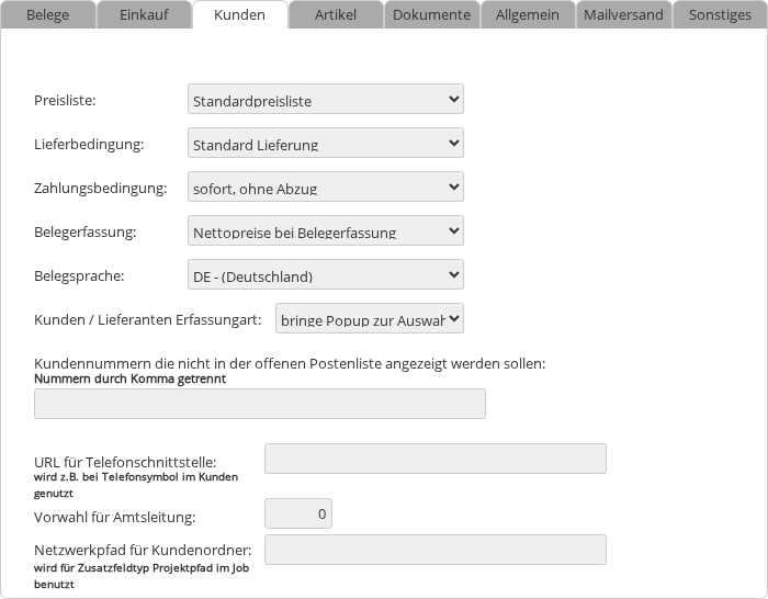 • Festlegung der Standard-Belegart und weiterer Voreinstellungen für die Belegerfassung und -darstellung.